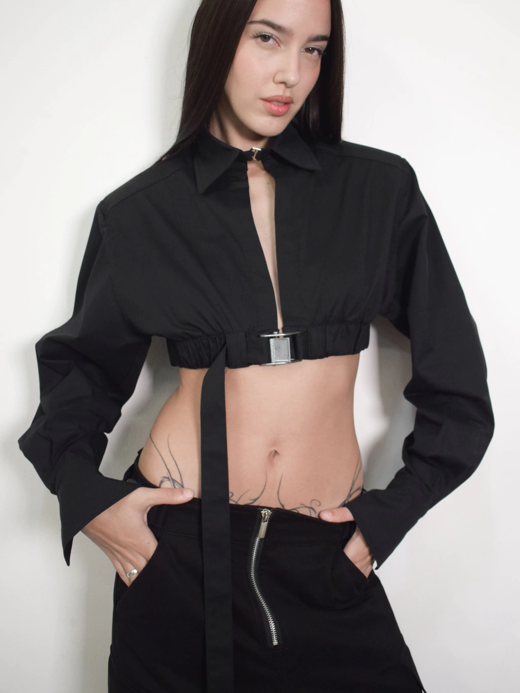 Camisa crop de gabardina camisera 5oz