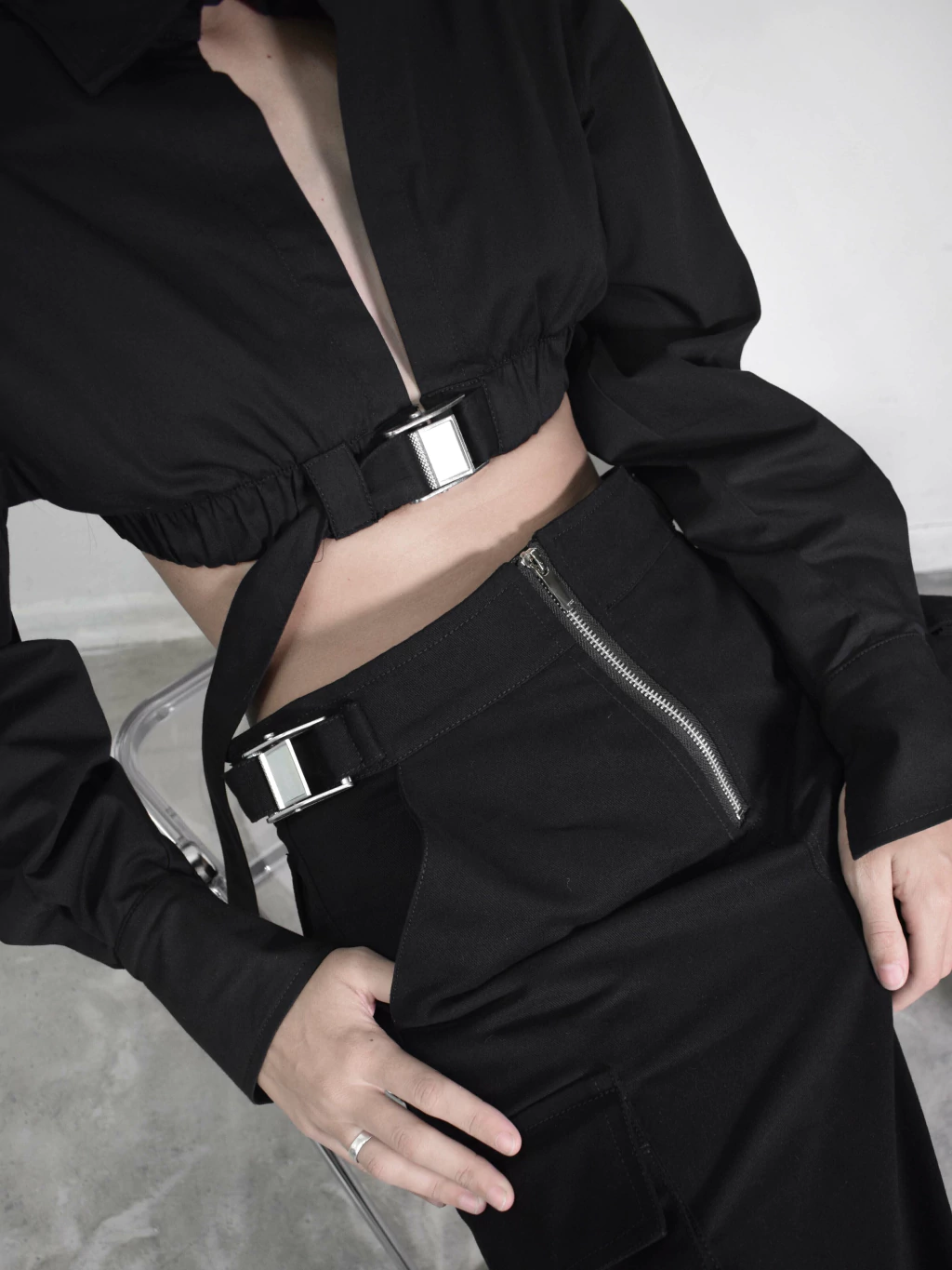 Acceso con ganchito en pie de cuello y hebilla con lazo en cintura