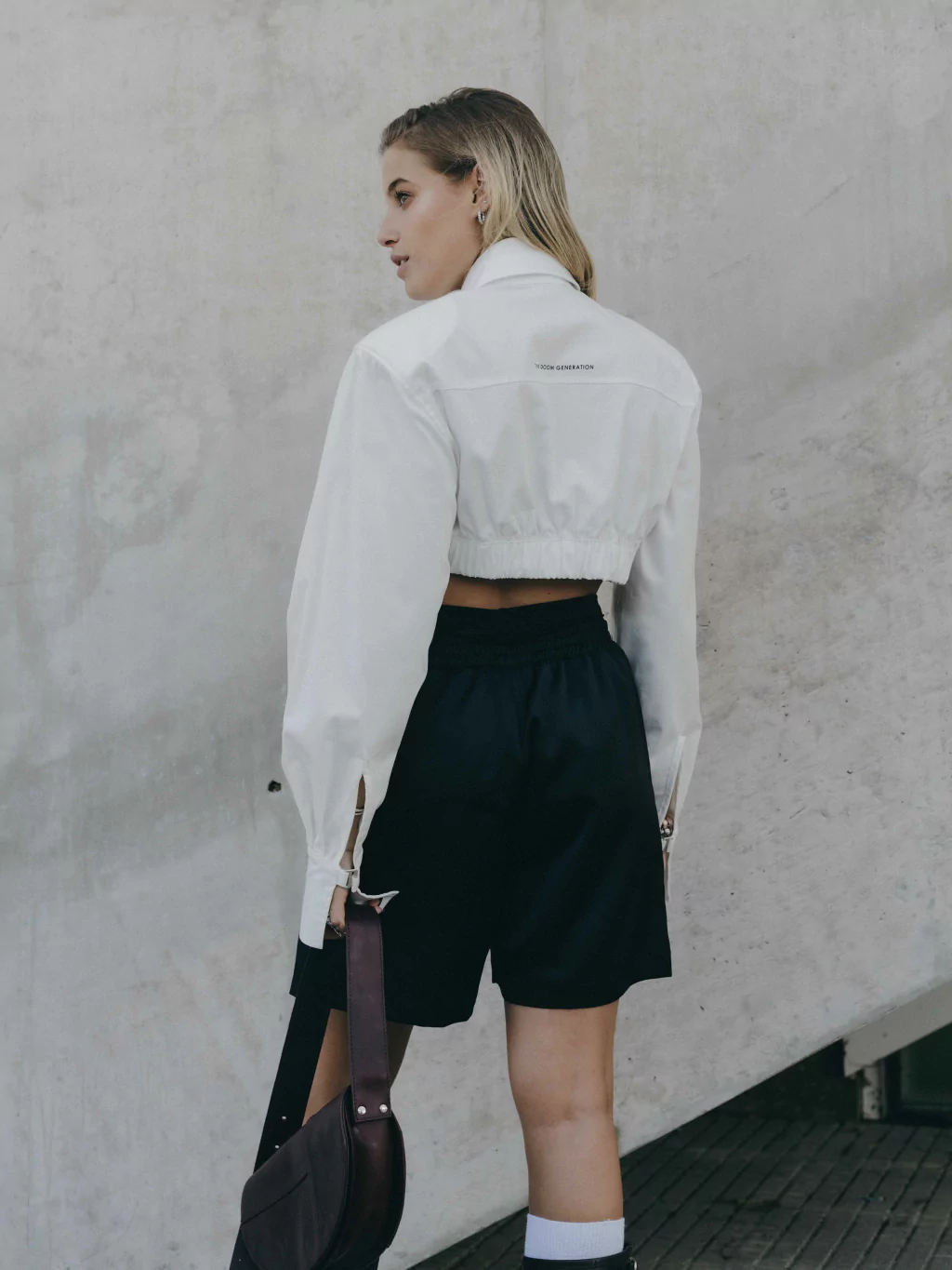 Espalda con detalle de estampa de marca en canesú de espalda